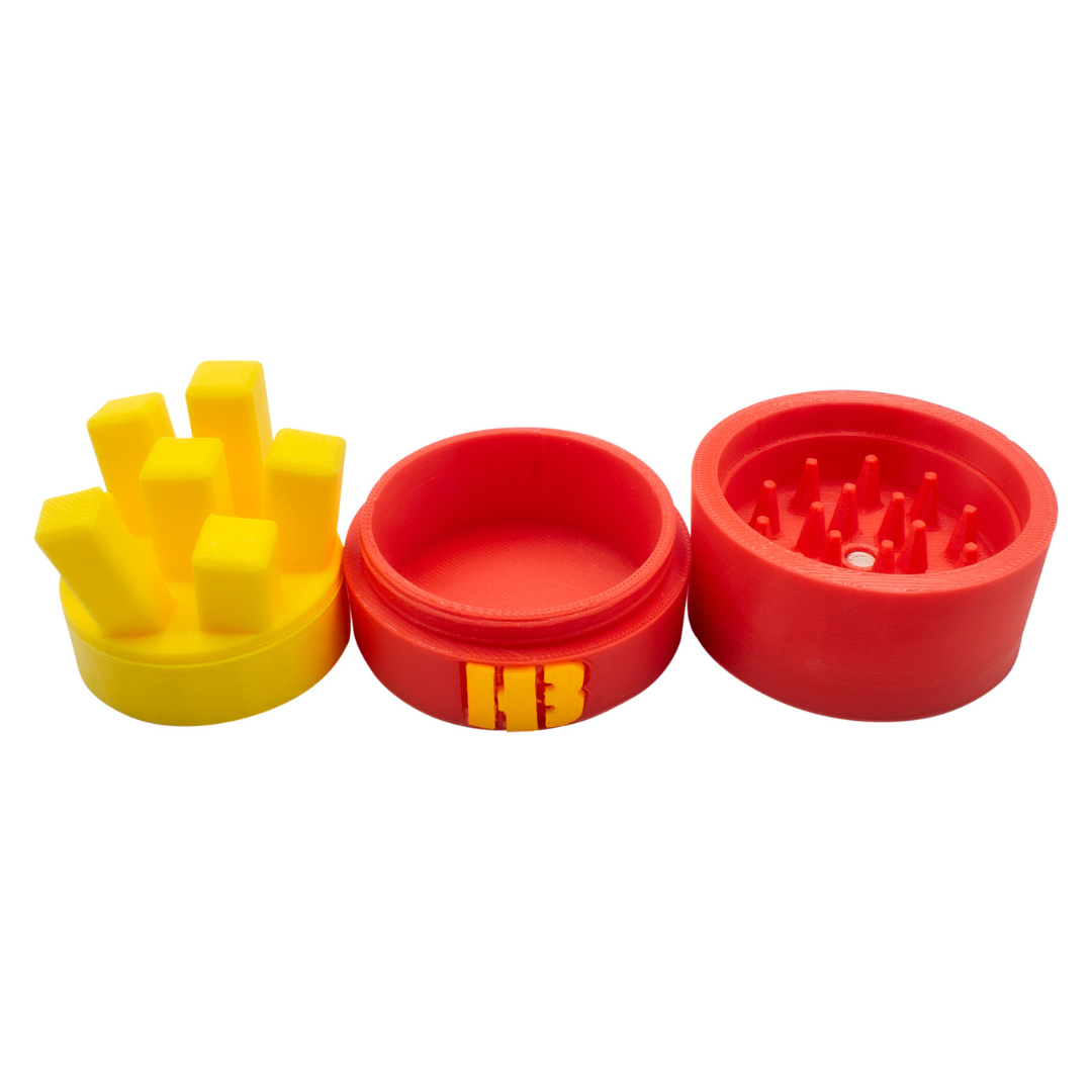 En el mundo del cannabis, cada detalle cuenta para disfrutar al máximo de la experiencia. El Grinder 2P Papas Fritas con Contenedor combina diseño innovador, practicidad y un toque divertido gracias a su original forma inspirada en una caja de papas fritas. Hecho en impresión 3D de alta calidad, este grinder no solo destaca por su estilo, sino también por la precisión con la que tritura tus flores.