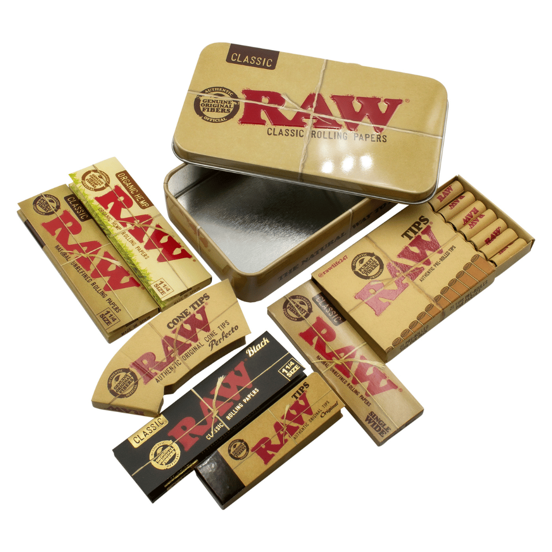El Raw Starter Box 1/4 Edition es un kit completo y práctico diseñado para quienes quieren disfrutar de la experiencia RAW desde el primer día. Incluye todos los elementos básicos de la marca —papeles, filtros y conos— reunidos en una caja metálica duradera y de diseño elegante. Es la opción perfecta para principiantes o amantes de la marca que buscan tener su equipo siempre listo y organizado.